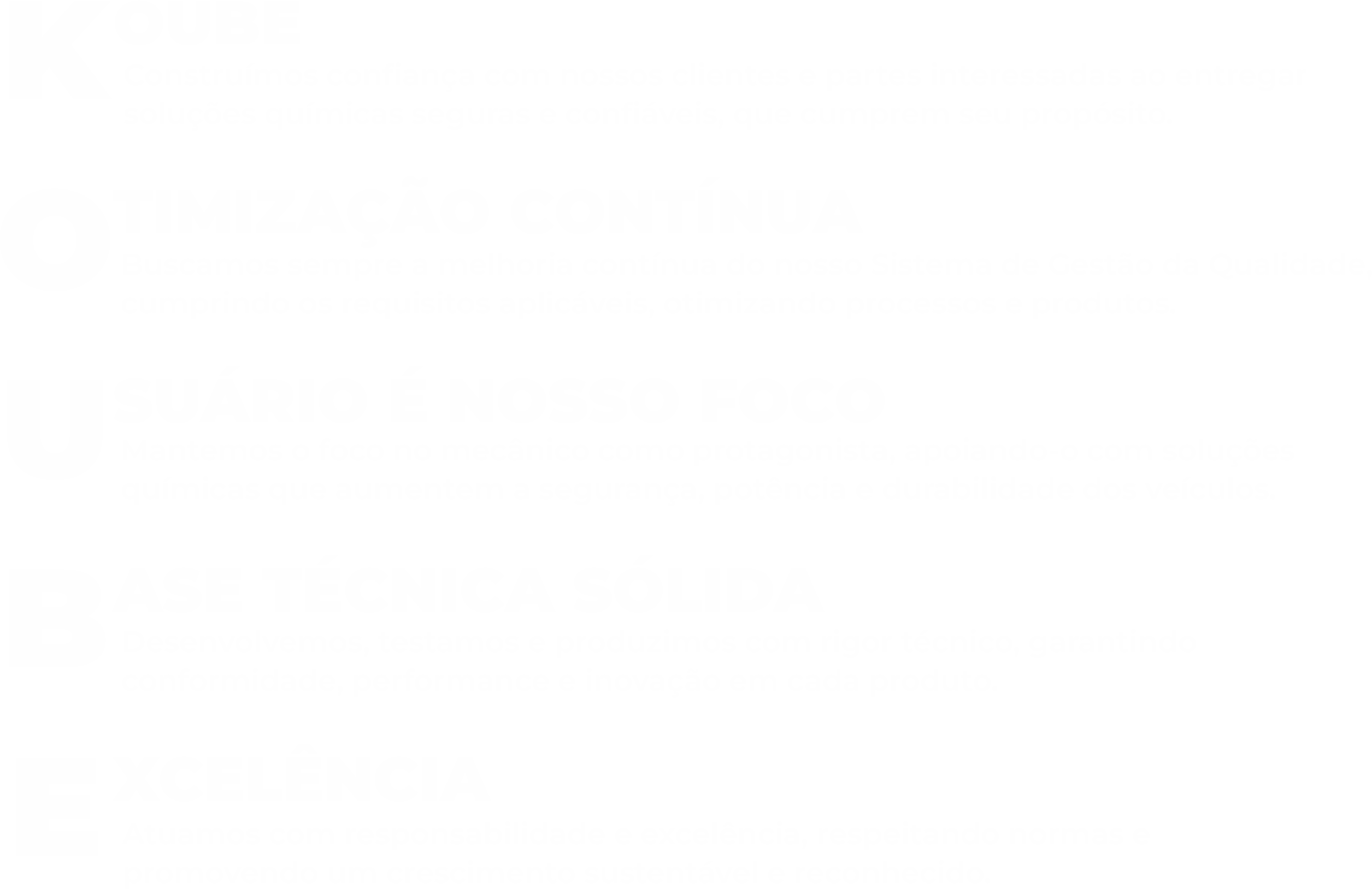 Desenvolver, testar, produzir e comercializar soluções químicas inovadoras que elevem a segurança, o desempenho, a durabilidade e a estética dos veículos.